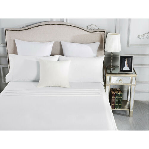 1800TC Queen Bed Cotton 4Pcs Sheet Set Fitted Flat Easy Care White/Ivory