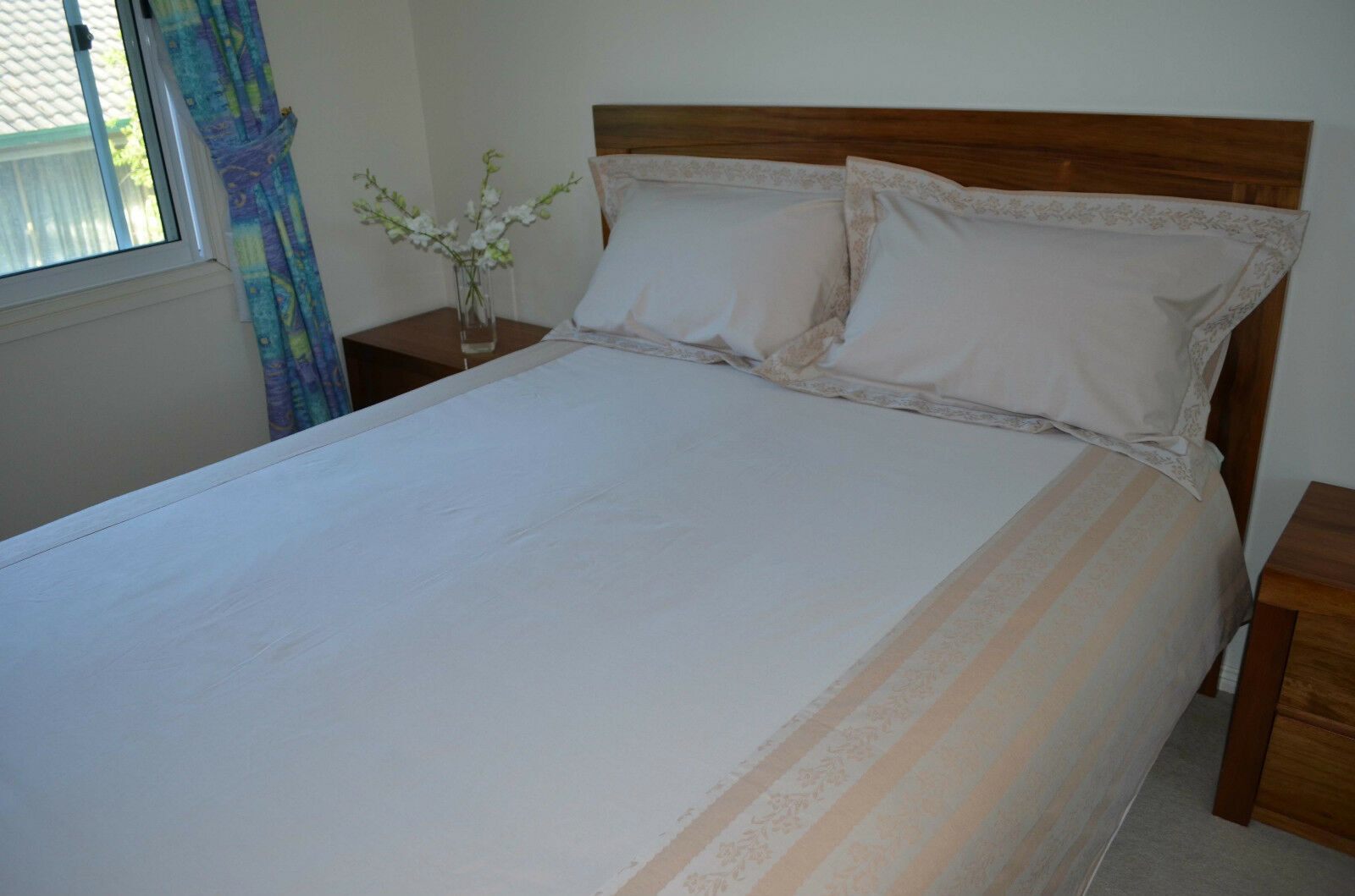 Organic Cotton Queen Bed Duvet Cover Set Natural Brown Eco-Friendly Floral
